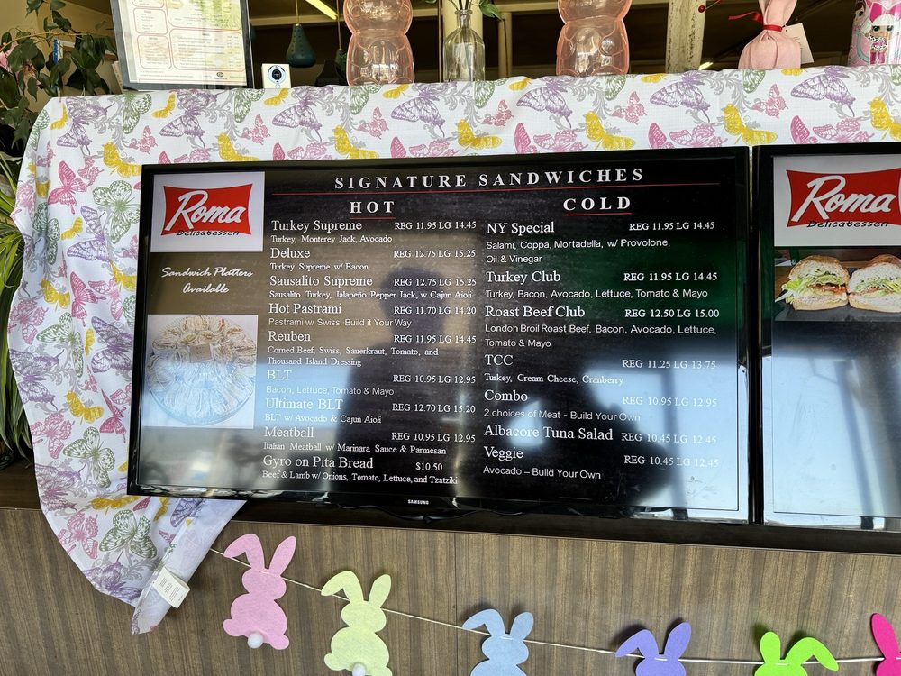 Roma Deli, located in San Bruno, offers a diverse menu with options for delivery, takeout, catering, and more. Customers rave about the generous portions of Boar's Head deli meats in sandwiches like the Hot Reuben and the Chicken Salad. The Dutch Crunch bread, known for its delicious taste and texture, complements the fillings perfectly. Visitors appreciate the friendly service and clean atmosphere of this family-owned deli. Prices are reasonable, and the chip selection is a standout feature. With convenient amenities like Wi-Fi, parking options, and a TV, Roma Deli is an ideal spot for a quick and delicious lunch. Next time you're in the area, be sure to stop by and experience the flavorful sandwiches for yourself.